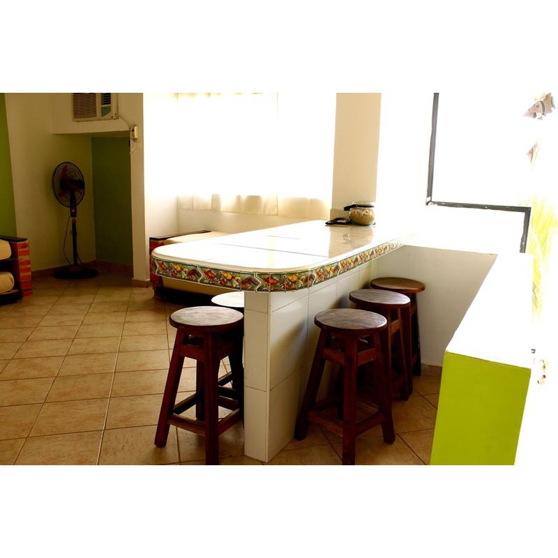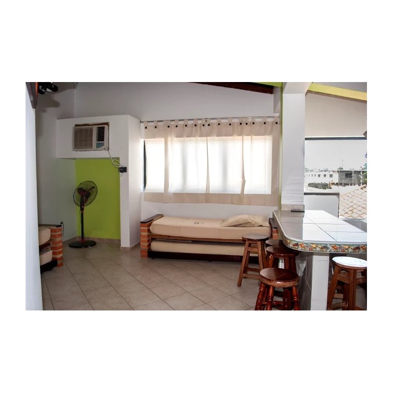 Acogedora Suite en planta alta, tiene acceso por escaleras con amplios ventanales y todos los servicios de Apartotel. Permite alojar un máximo de 7 personas entre adultos y niños o 7 adultos.